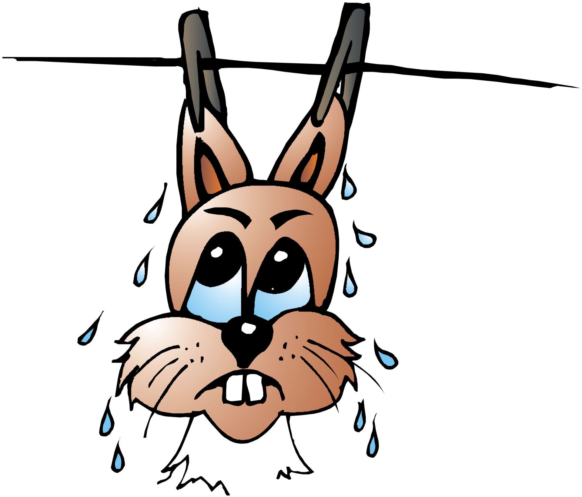 Hoppelmax zitterte am ganzen Körper und sein Fell war platschnass. Mama Hoppel holte 2 riesengroße Klammern aus ihrem Wäschebeutel und nahm den Hoppelmax an beide Ohren.